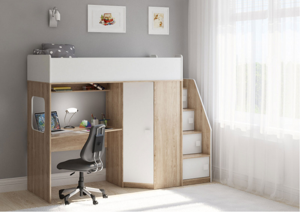 Учебная зона со столом под спальным местом открывает возможности для письменных работ,а также здесь удобно расположить ноутбук.